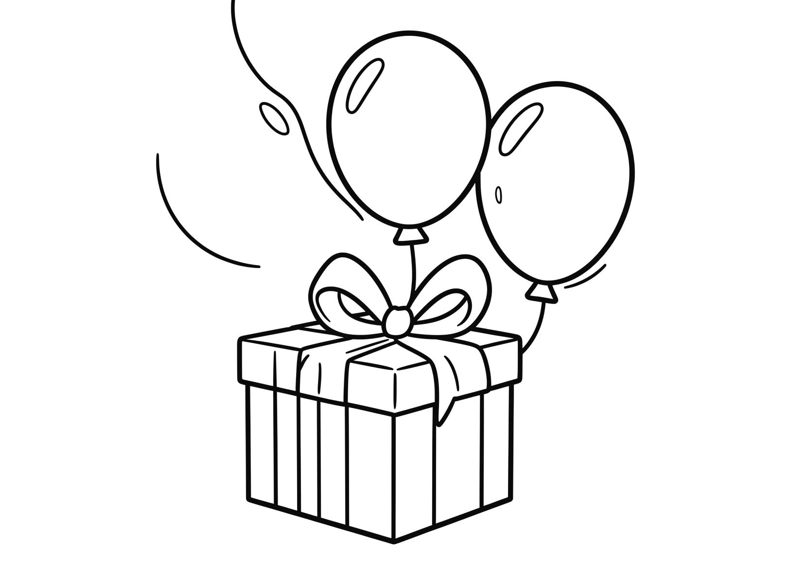 Geburtstagsgeschenk mit Schleife neben Luftballons - Ausmalbild