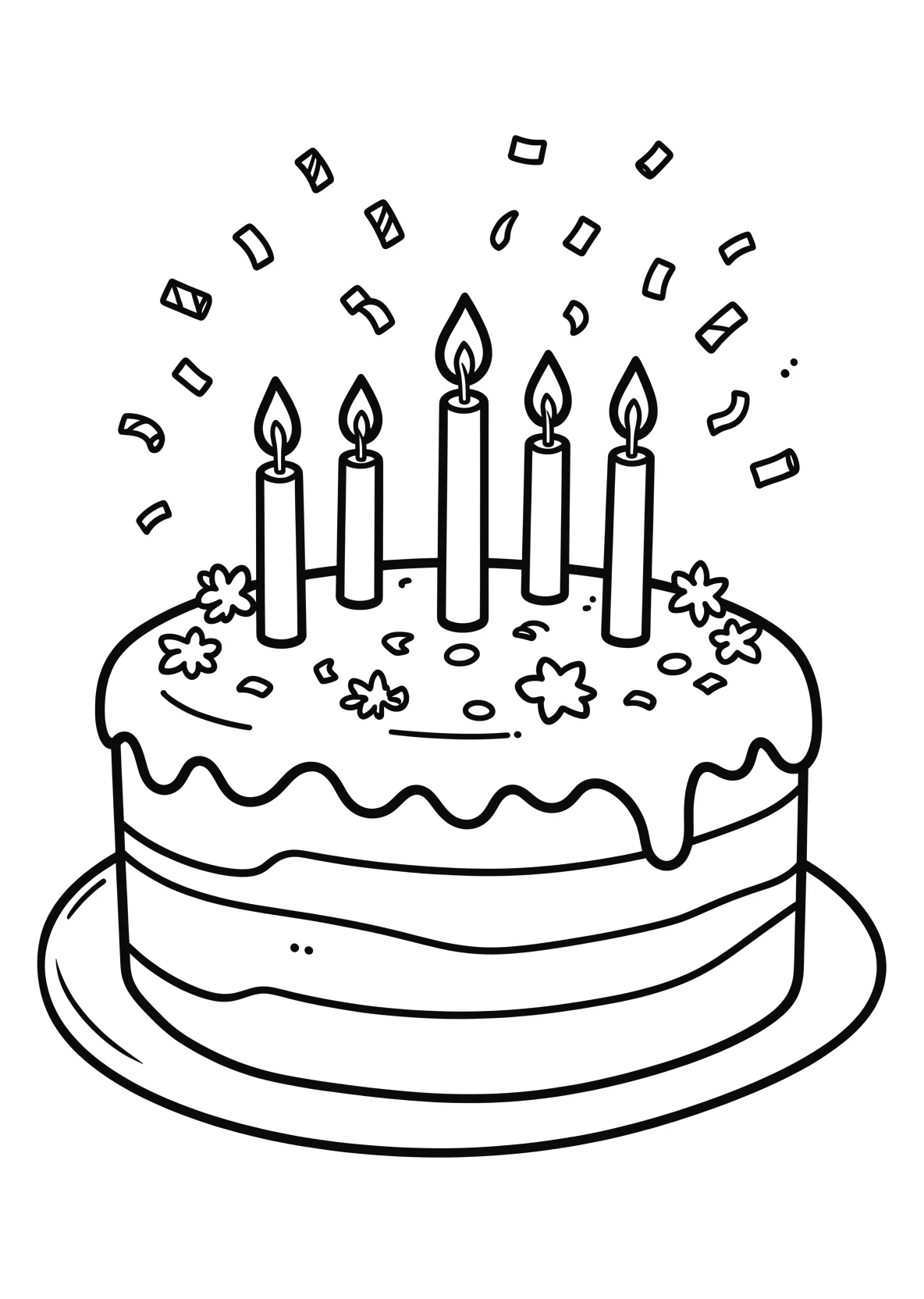 Großer Geburtstagskuchen mit Kerzen - Ausmalbild