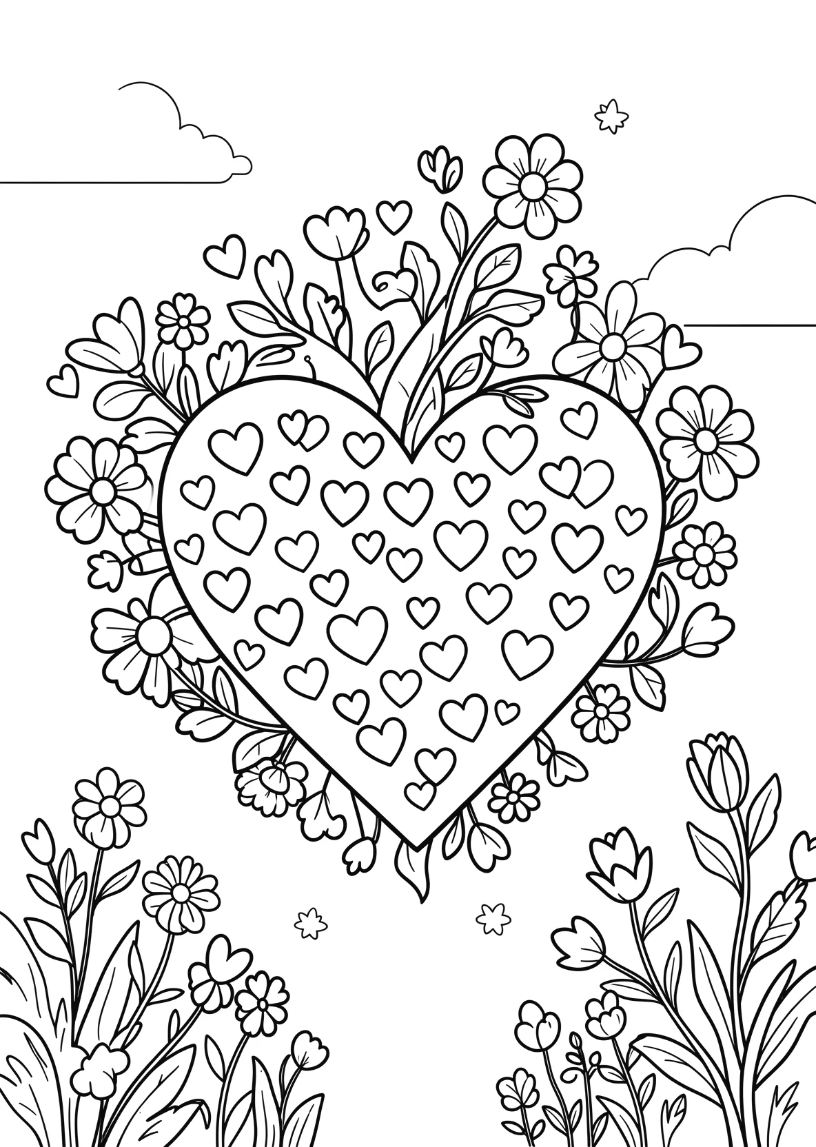 Großes Herz mit vielen kleinen Herzchen - Ausmalbild