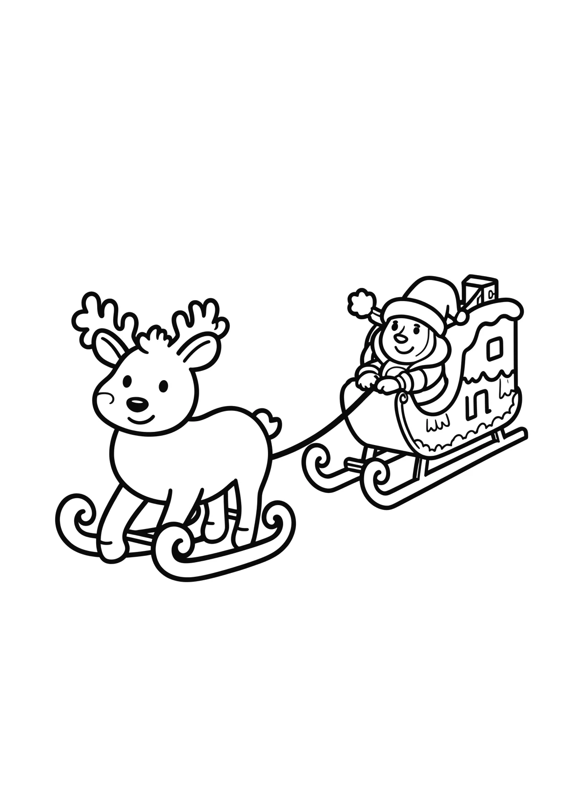 Rentier zieht den Schlitten des Weihnachtsmanns - Ausmalbild