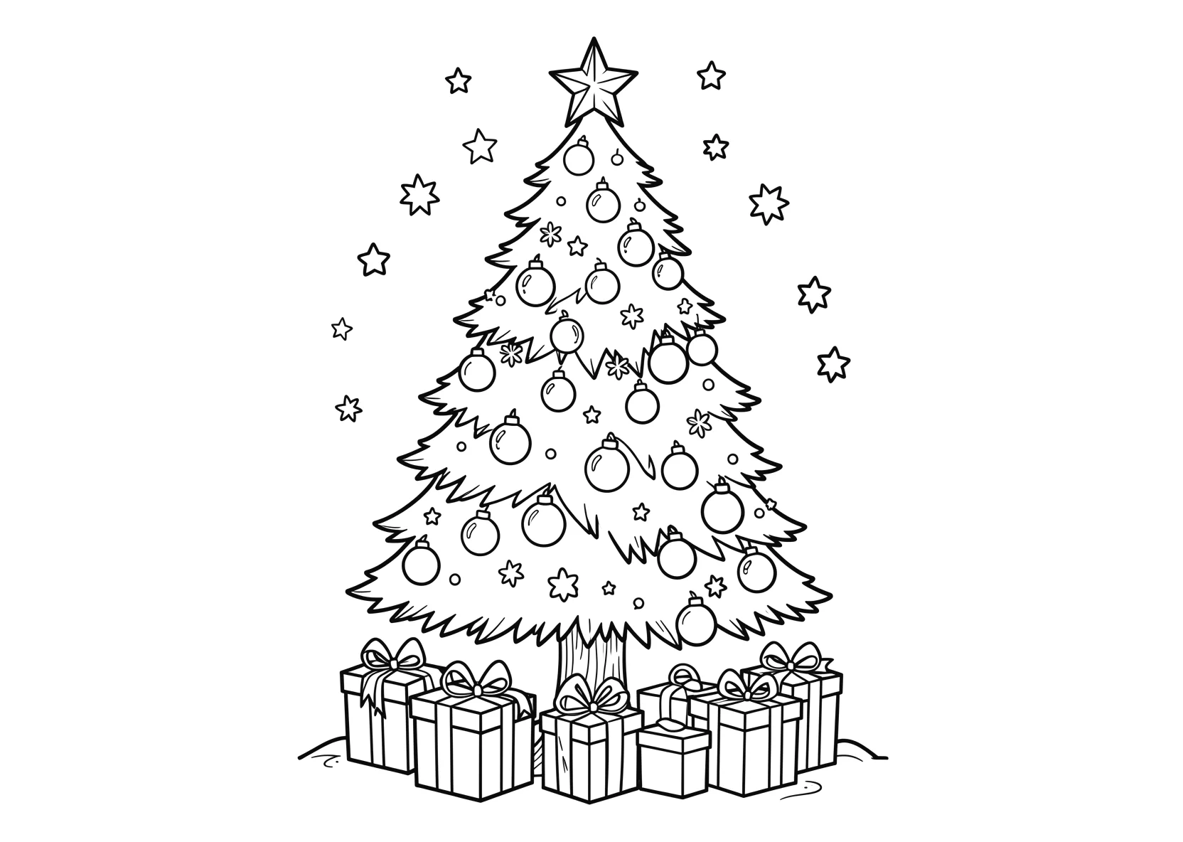 Kinderbuch erstellenWeihnachtsbaum mit Kugeln - Ausmalbild - kostenlos herunterladen