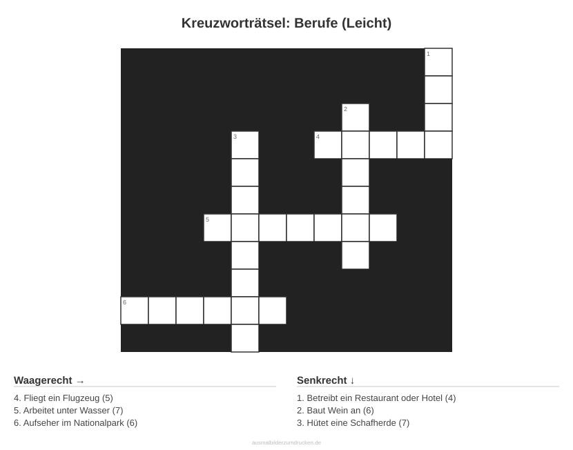 Kreuzworträtsel: Berufe (Leicht) - kostenlos herunterladen