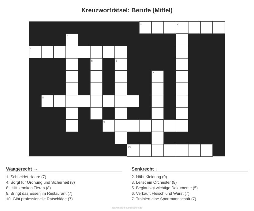 Kinderbuch erstellenKreuzworträtsel: Berufe (Mittel) - kostenlos herunterladen