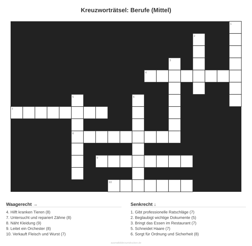 Kinderbuch erstellenKreuzworträtsel: Berufe (Mittel) - kostenlos herunterladen