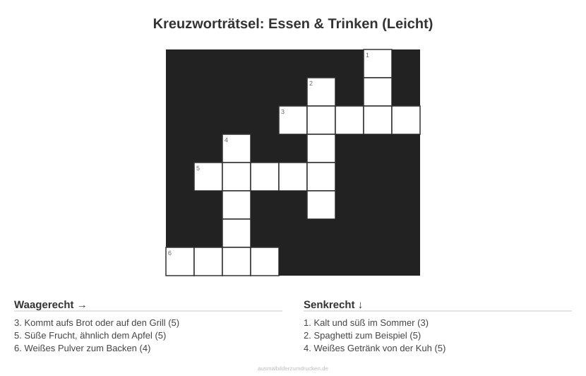 Kreuzworträtsel: Essen & Trinken (Leicht) - kostenlos herunterladen