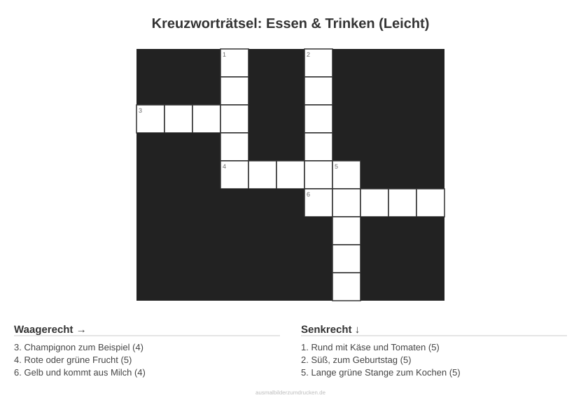 Kinderbuch erstellenKreuzworträtsel: Essen & Trinken (Leicht) - kostenlos herunterladen