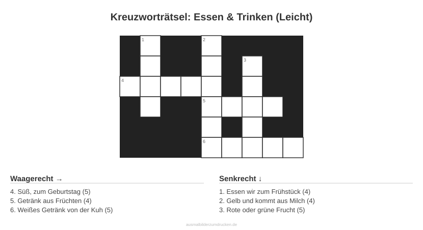 Kreuzworträtsel: Essen & Trinken (Leicht) - kostenlos herunterladen
