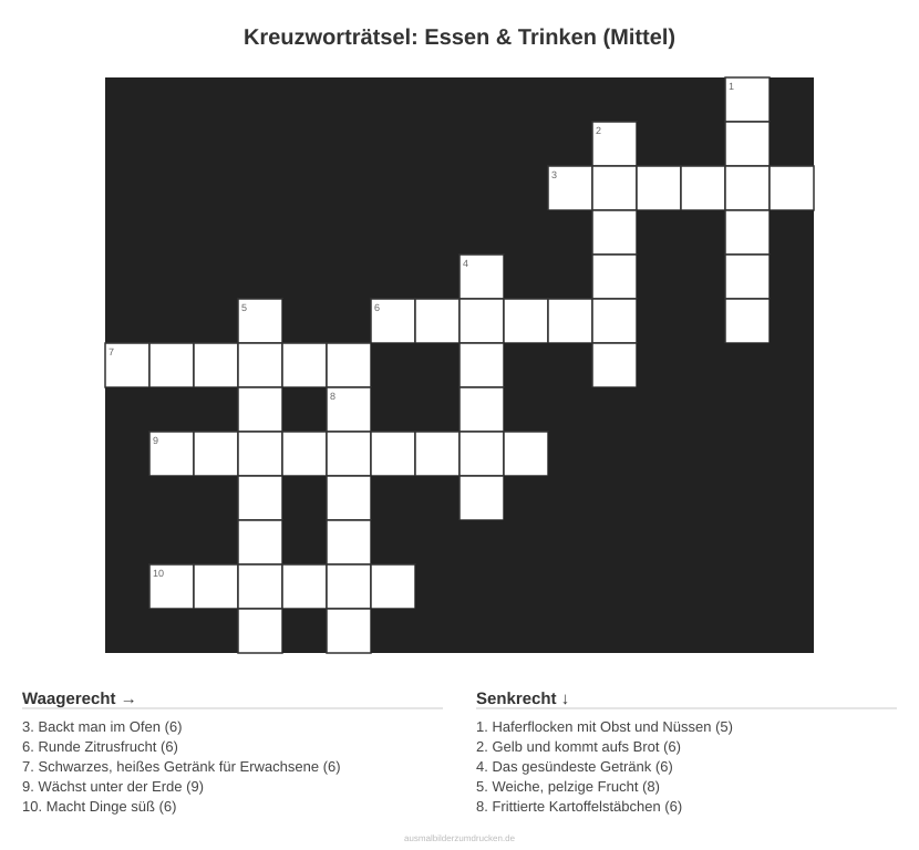 Kreuzworträtsel: Essen & Trinken (Mittel) - kostenlos herunterladen