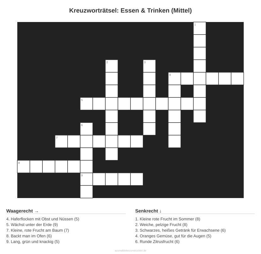 Kreuzworträtsel: Essen & Trinken (Mittel)