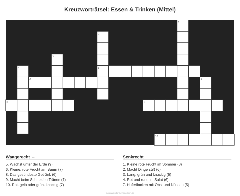 Kreuzworträtsel: Essen & Trinken (Mittel) - kostenlos herunterladen
