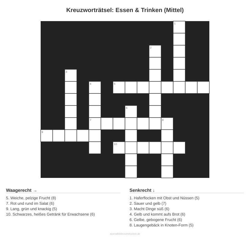 Kreuzworträtsel: Essen & Trinken (Mittel) - kostenlos herunterladen