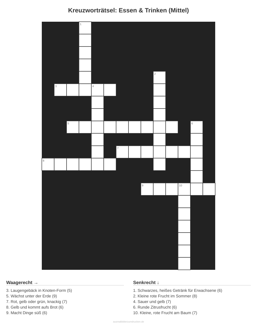 Kreuzworträtsel: Essen & Trinken (Mittel) - kostenlos herunterladen