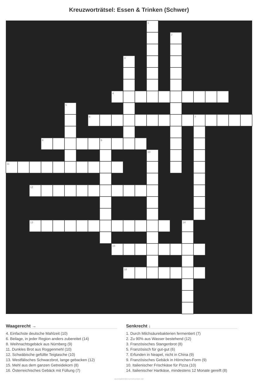 Kreuzworträtsel: Essen & Trinken (Schwer) - kostenlos herunterladen