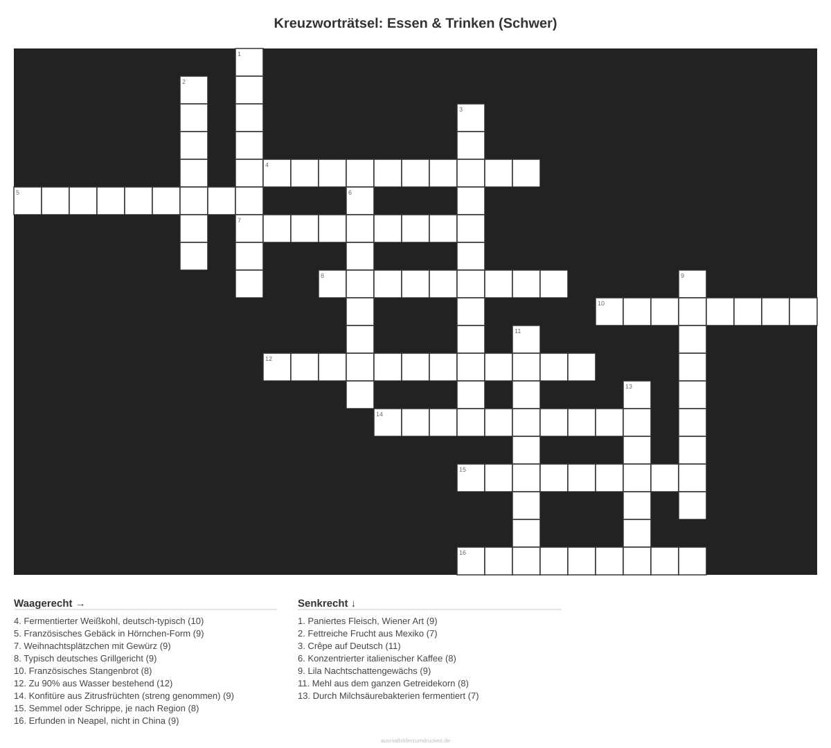 Kreuzworträtsel: Essen & Trinken (Schwer) - kostenlos herunterladen