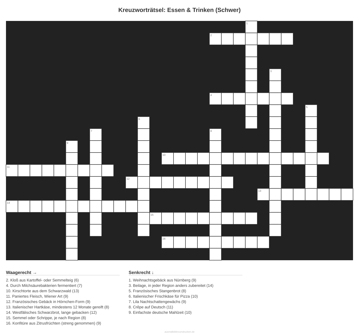 Kreuzworträtsel: Essen & Trinken (Schwer) - kostenlos herunterladen