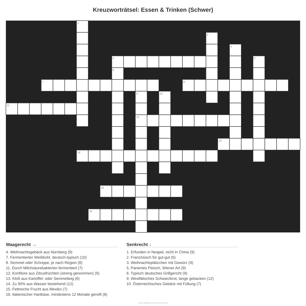 Kreuzworträtsel: Essen & Trinken (Schwer)
