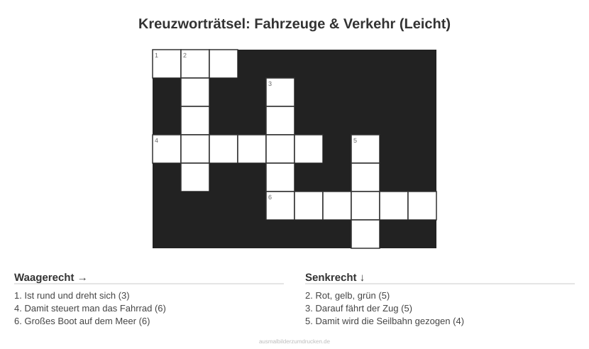 Kinderbuch erstellenKreuzworträtsel: Fahrzeuge & Verkehr (Leicht) - kostenlos herunterladen