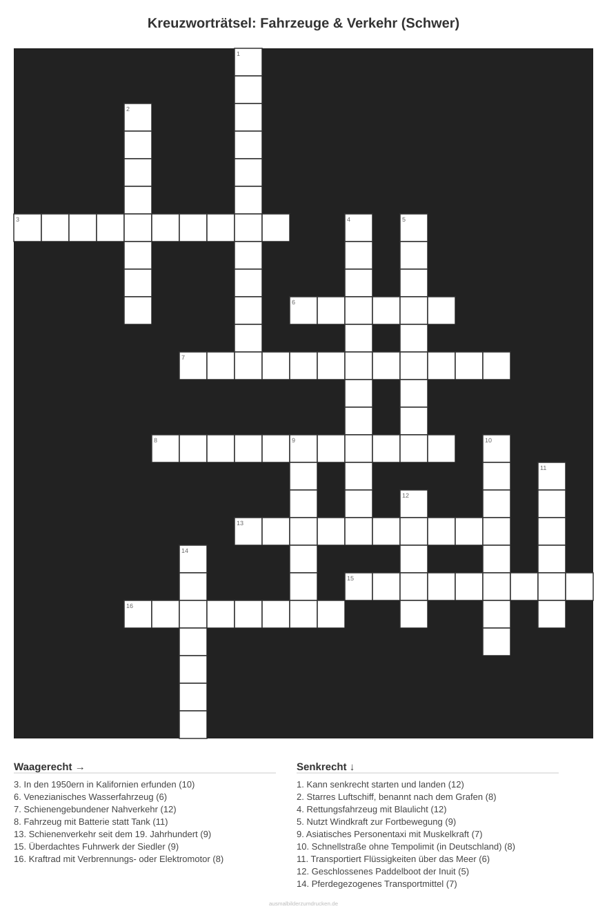 Kinderbuch erstellenKreuzworträtsel: Fahrzeuge & Verkehr (Schwer) - kostenlos herunterladen