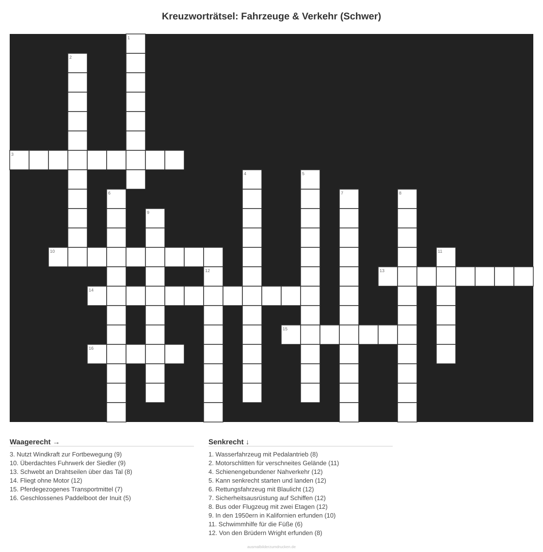 Kinderbuch erstellenKreuzworträtsel: Fahrzeuge & Verkehr (Schwer) - kostenlos herunterladen