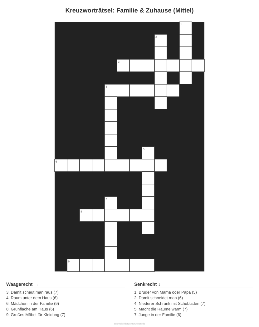 Kinderbuch erstellenKreuzworträtsel: Familie & Zuhause (Mittel) - kostenlos herunterladen