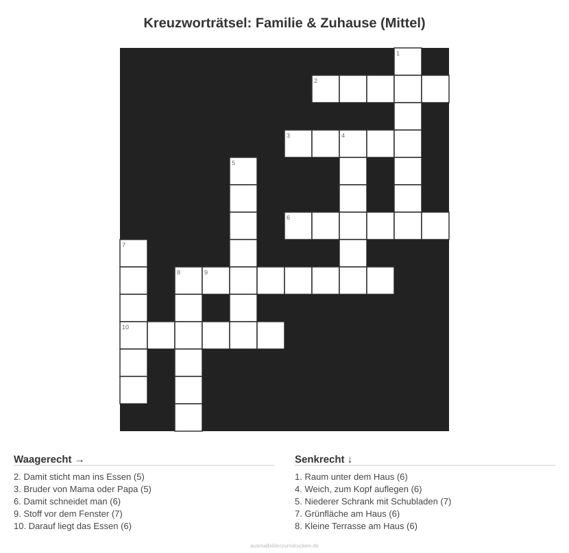 Kreuzworträtsel: Familie & Zuhause (Mittel) - kostenlos herunterladen