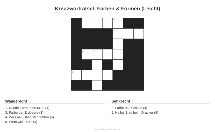 Kreuzworträtsel: Farben & Formen (Leicht)