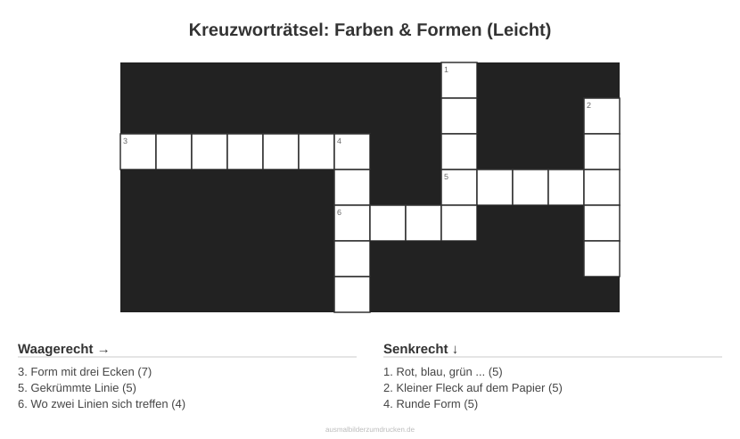 Kreuzworträtsel: Farben & Formen (Leicht)