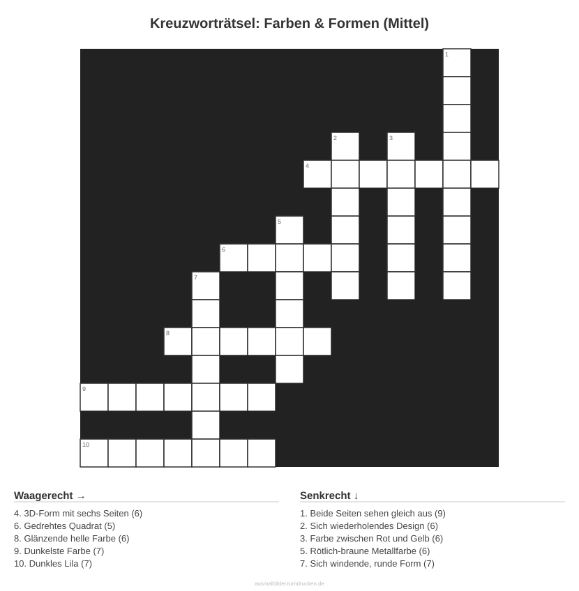 Kreuzworträtsel: Farben & Formen (Mittel)