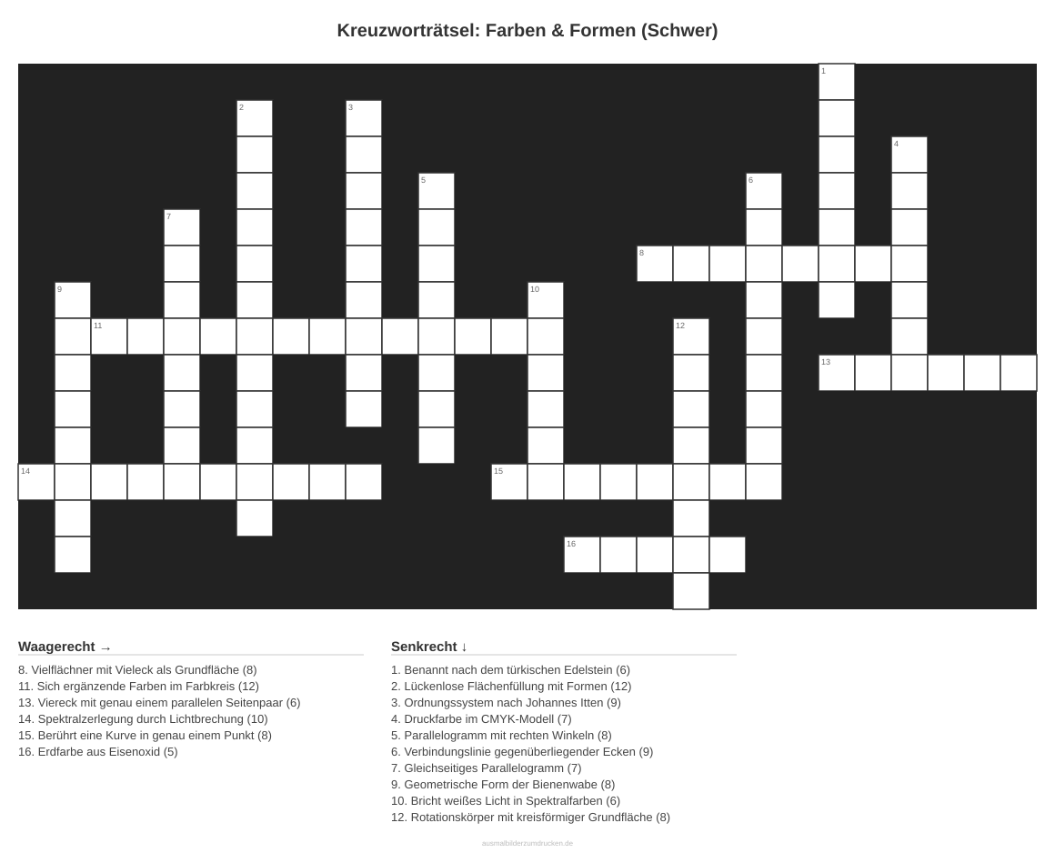 Kreuzworträtsel: Farben & Formen (Schwer)