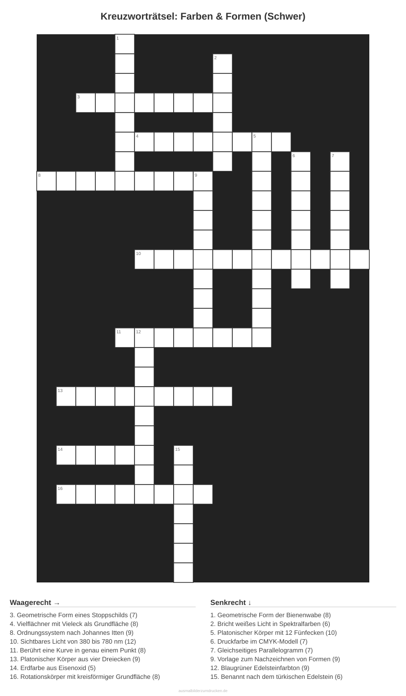 Kreuzworträtsel: Farben & Formen (Schwer) - kostenlos herunterladen
