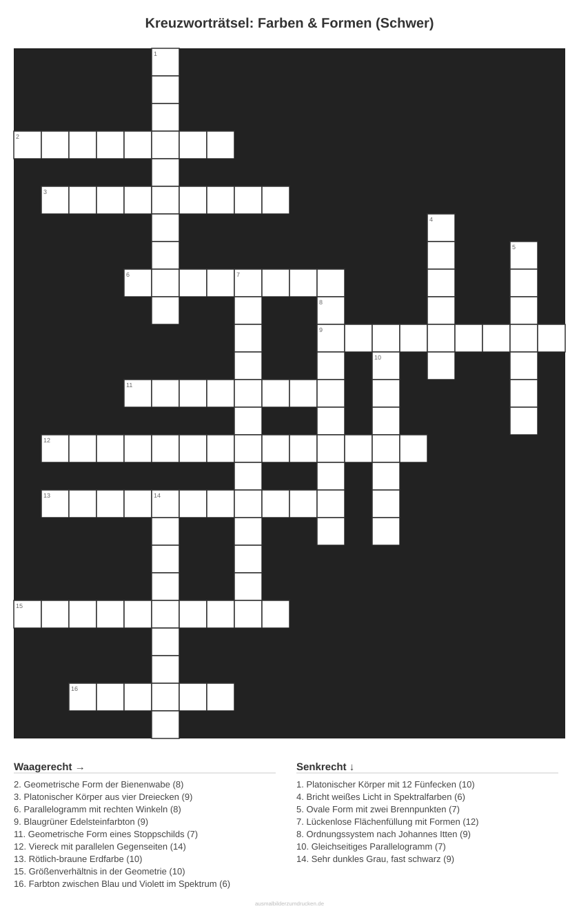 Kreuzworträtsel: Farben & Formen (Schwer)