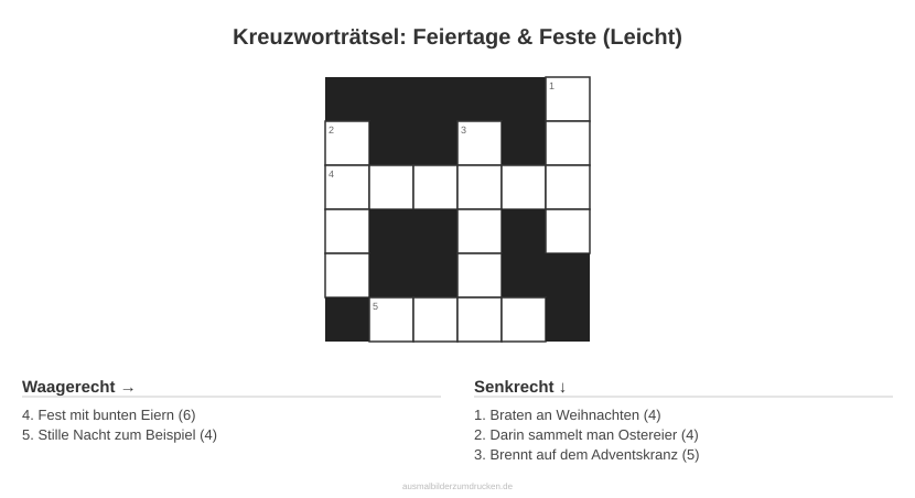 Kreuzworträtsel: Feiertage & Feste (Leicht)
