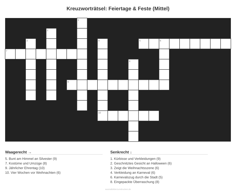 Kreuzworträtsel: Feiertage & Feste (Mittel)