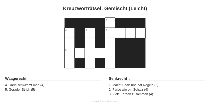 „Kreuzworträtsel: Gemischt (Leicht)“ - ein Rätsel, das Wortschatz und Logik verbindet. Dieses Motiv aus dem Bereich Sonstiges eignet sich besonders für 11- bis 14-Jährige.