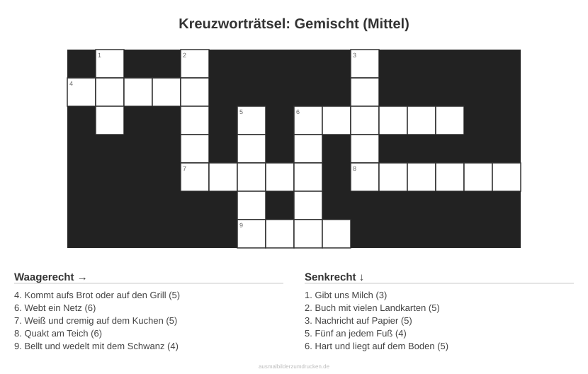 Kreuzworträtsel: Gemischt (Mittel) - kostenlos herunterladen
