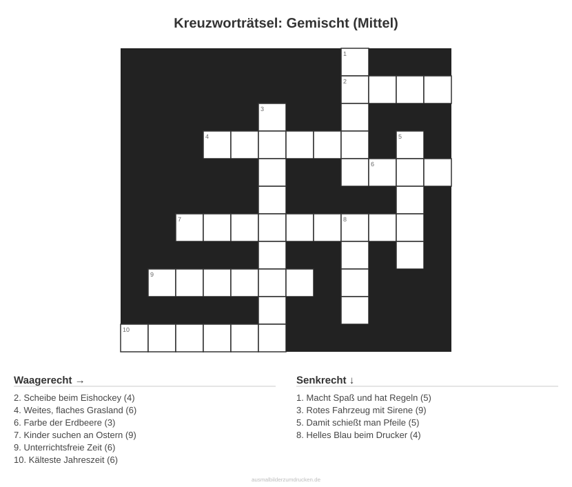 Kinderbuch erstellenKreuzworträtsel: Gemischt (Mittel) - kostenlos herunterladen