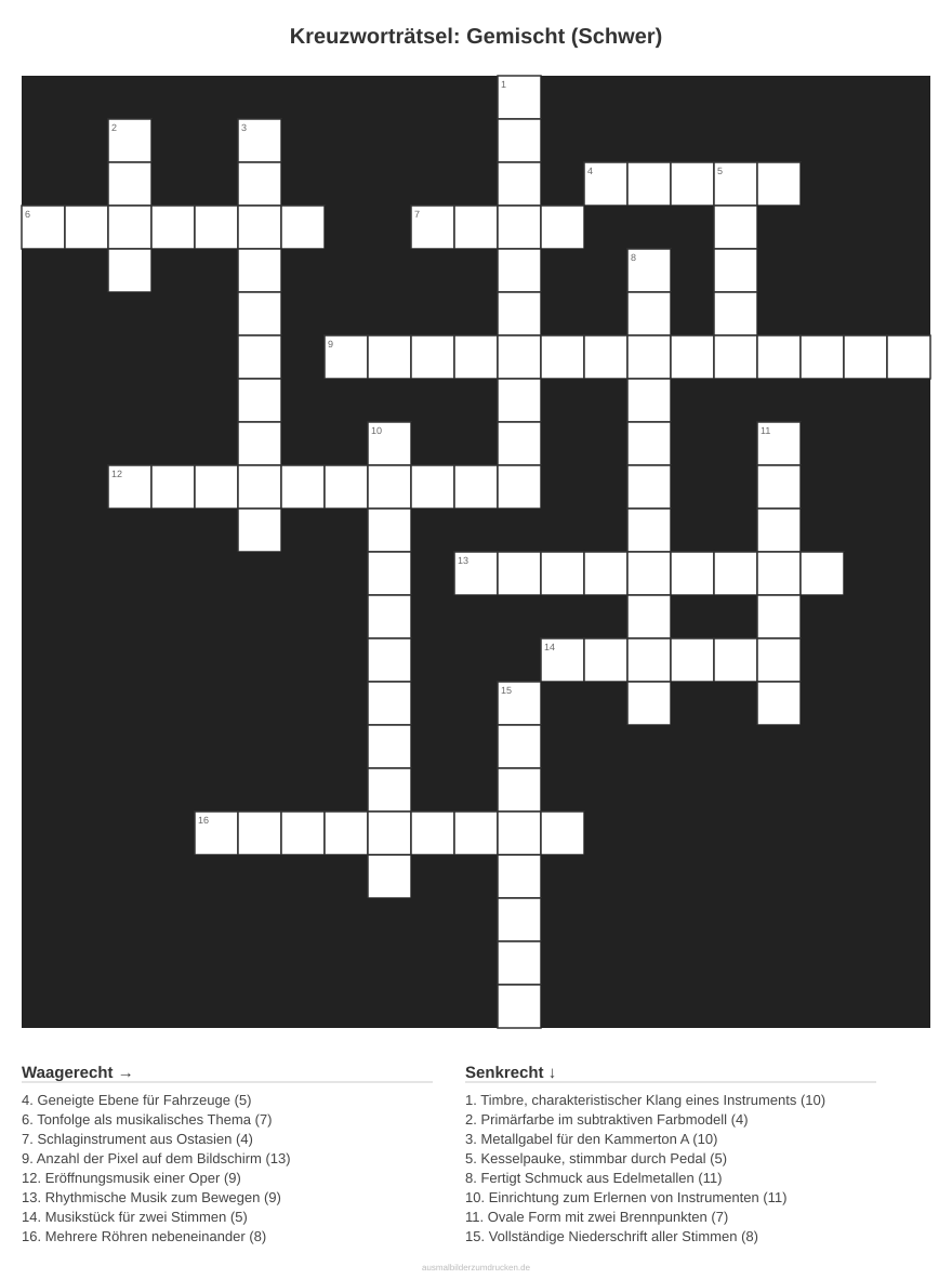 Kreuzworträtsel: Gemischt (Schwer) - kostenlos herunterladen