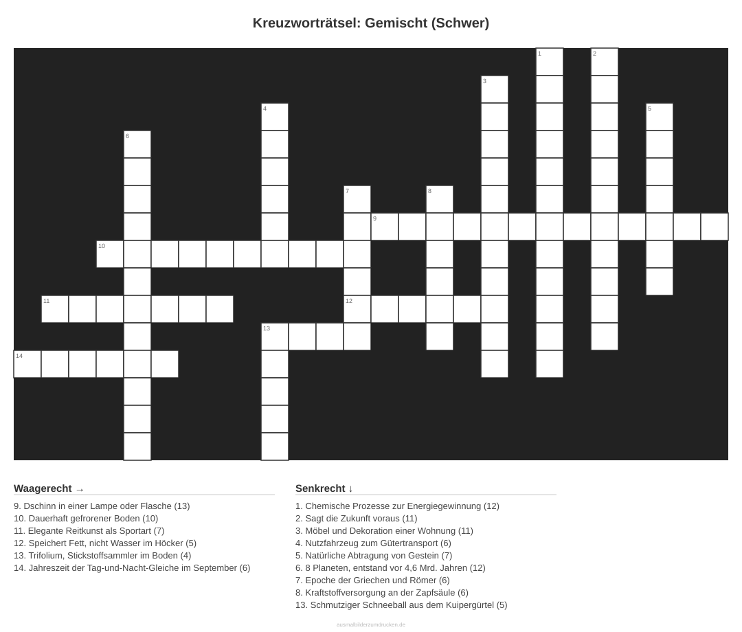 Kreuzworträtsel: Gemischt (Schwer) - kostenlos herunterladen