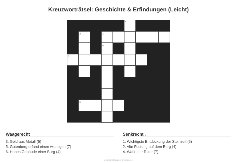 Kreuzworträtsel: Geschichte & Erfindungen (Leicht)