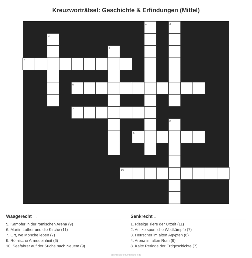 Köpfe rauchen lassen mit „Kreuzworträtsel: Geschichte & Erfindungen (Mittel)“. Dieses Motiv aus dem Bereich Geschichte eignet sich besonders für die Kleinsten.