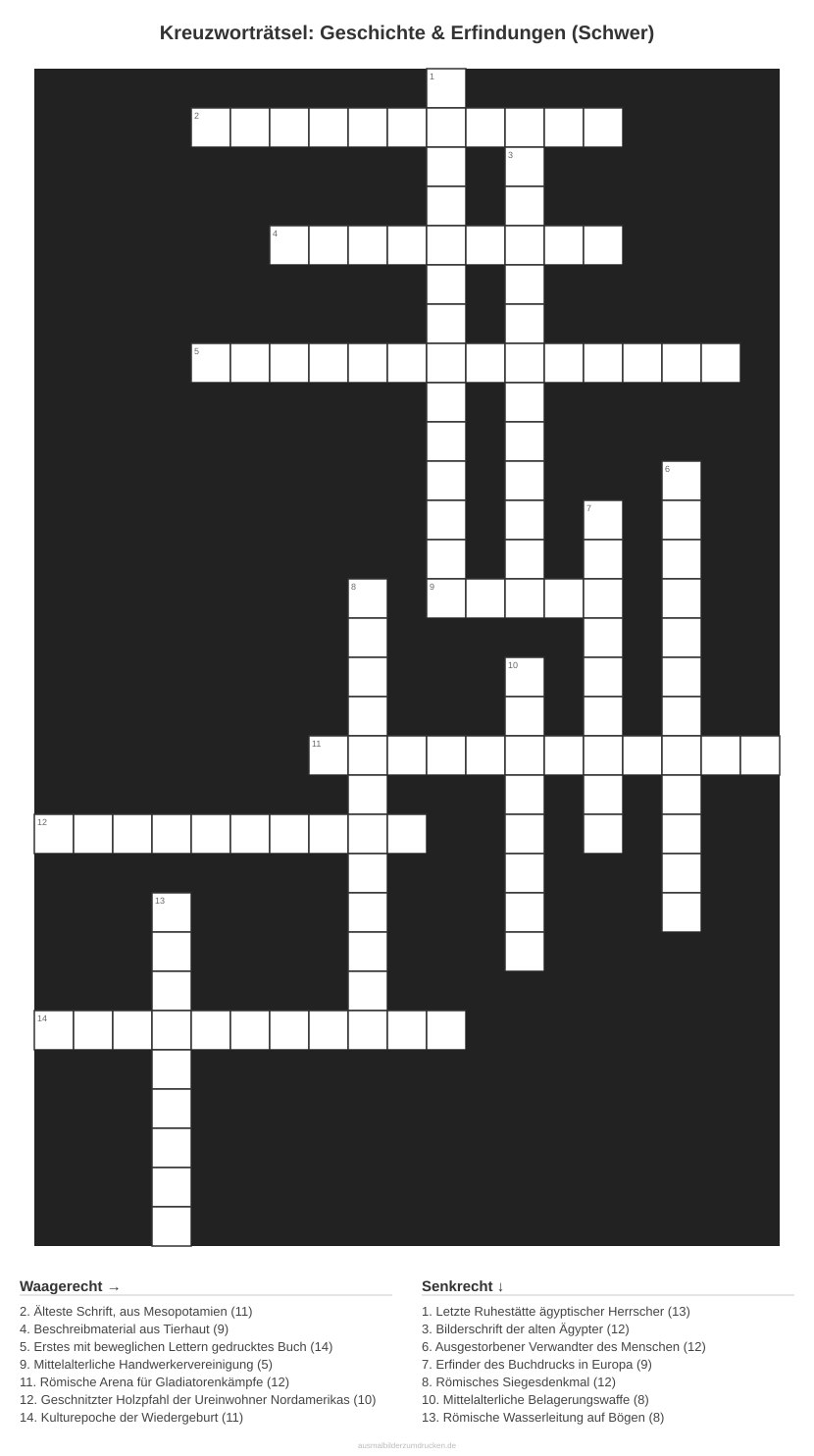 Kreuzworträtsel Kreuzworträtsel: Geschichte & Erfindungen (Schwer) aus der Kategorie Geschichte - kostenlos ausdrucken