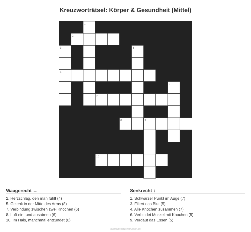 Kreuzworträtsel: Körper & Gesundheit (Mittel)