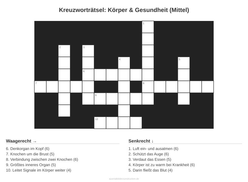 Kreuzworträtsel: Körper & Gesundheit (Mittel)