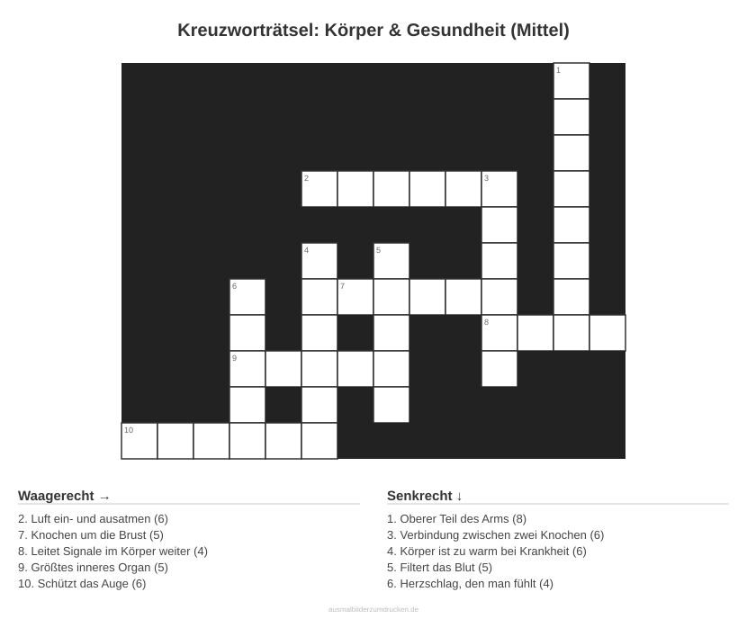 Kreuzworträtsel: Körper & Gesundheit (Mittel) - kostenlos herunterladen
