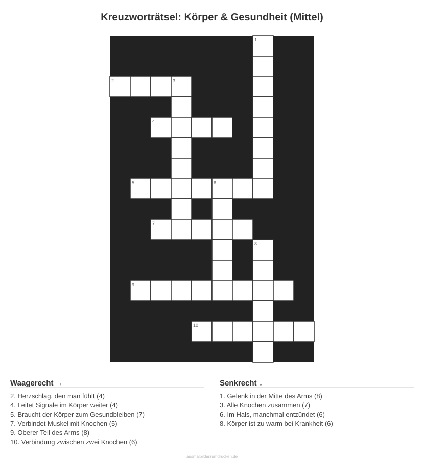 Kreuzworträtsel: Körper & Gesundheit (Mittel)