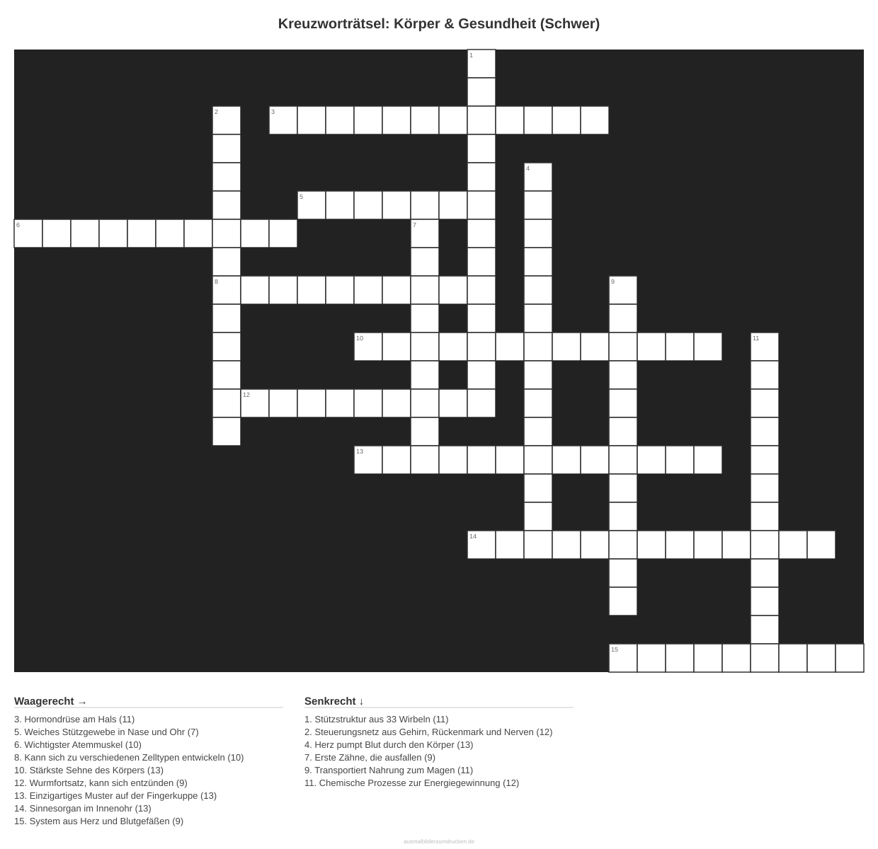 Kreuzworträtsel: Körper & Gesundheit (Schwer)