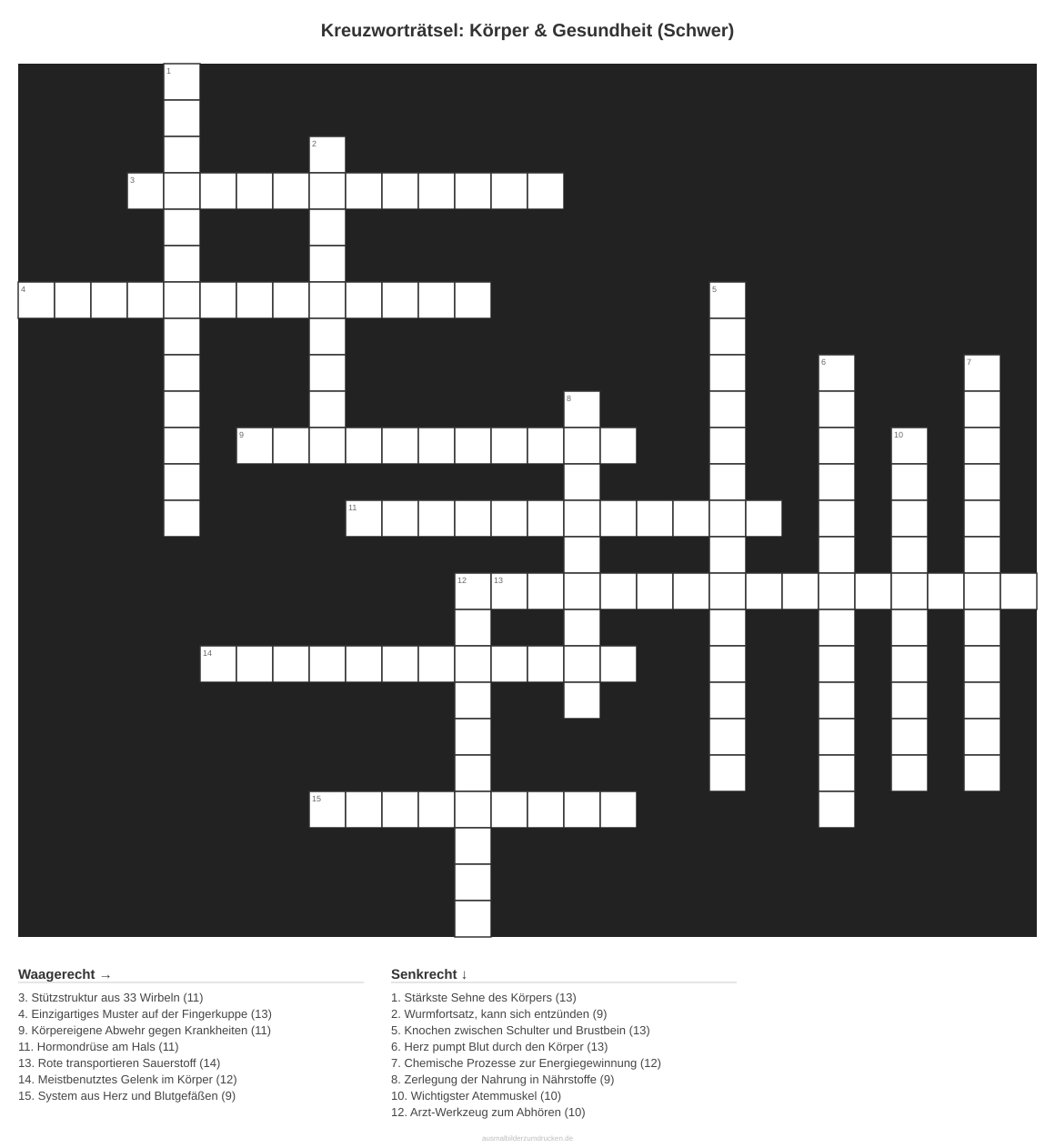Kreuzworträtsel: Körper & Gesundheit (Schwer)