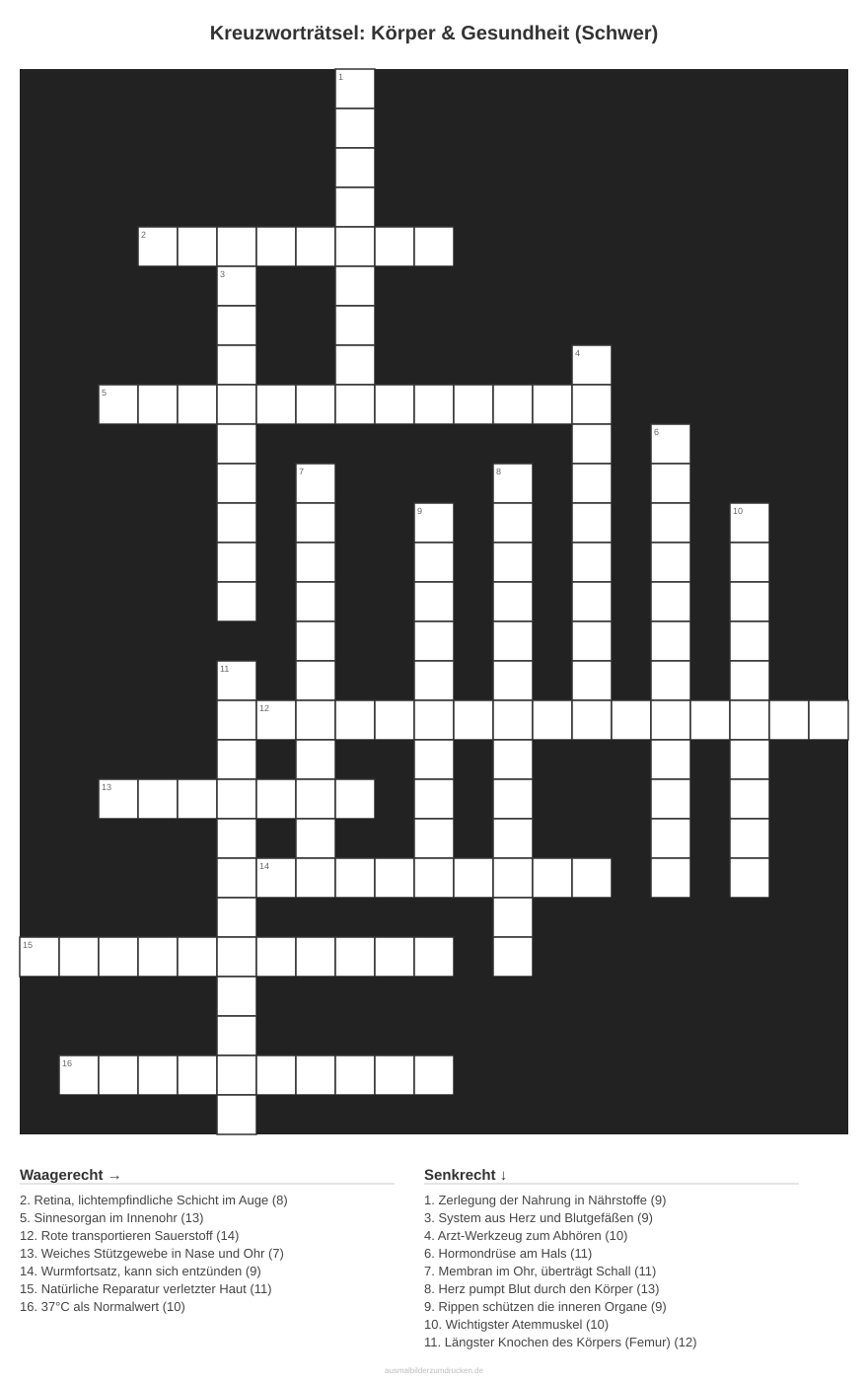 Kreuzworträtsel: Körper & Gesundheit (Schwer)