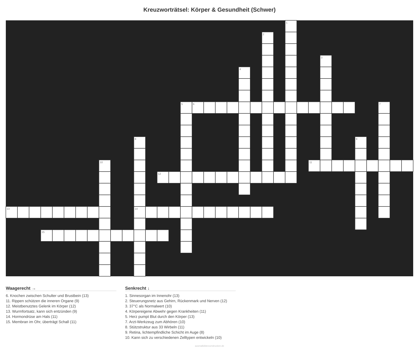 Kreuzworträtsel: Körper & Gesundheit (Schwer)