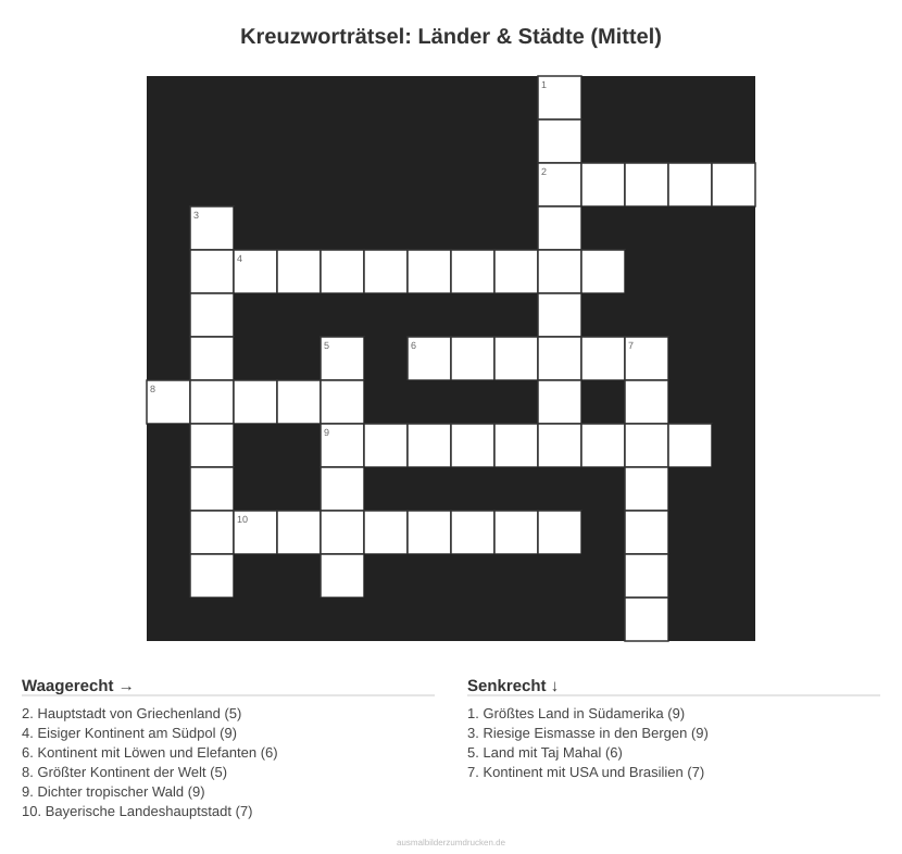Kreuzworträtsel Kreuzworträtsel: Länder & Städte (Mittel) aus der Kategorie Länder - kostenlos ausdrucken